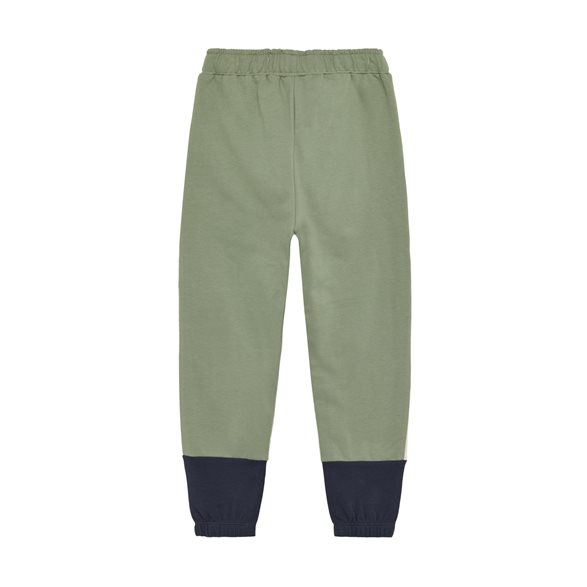 Joggingbyxor från Minymo i en härlig grön med detaljer i blått och vitt(varm ton).